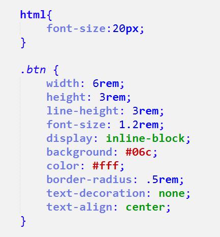 我把html设置成10px是为了方便我们计算,为什么6rem等于60px。如果这个时候我们的.btn的样式不变,我们再改变html的font-size的值,看看按钮发生上面变化: