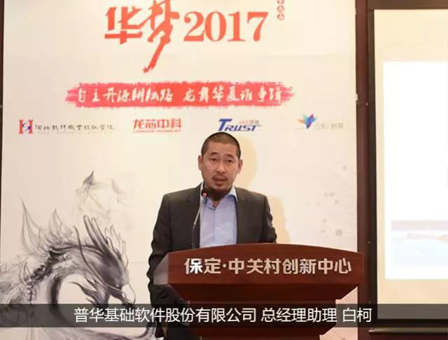 普华总经理助理白柯先生代表主办方发言,表达了公司对开源普及的支持,并指出很高兴看到这类自主可控代表性产业协同技术,在院校人才教育中的普及,并希望通过普华、龙芯、百信等自主开源产业技术在大赛中的支持服务,展现面向国家自主可控综合业务应用领域的体系协同规范性发展的战略构想。