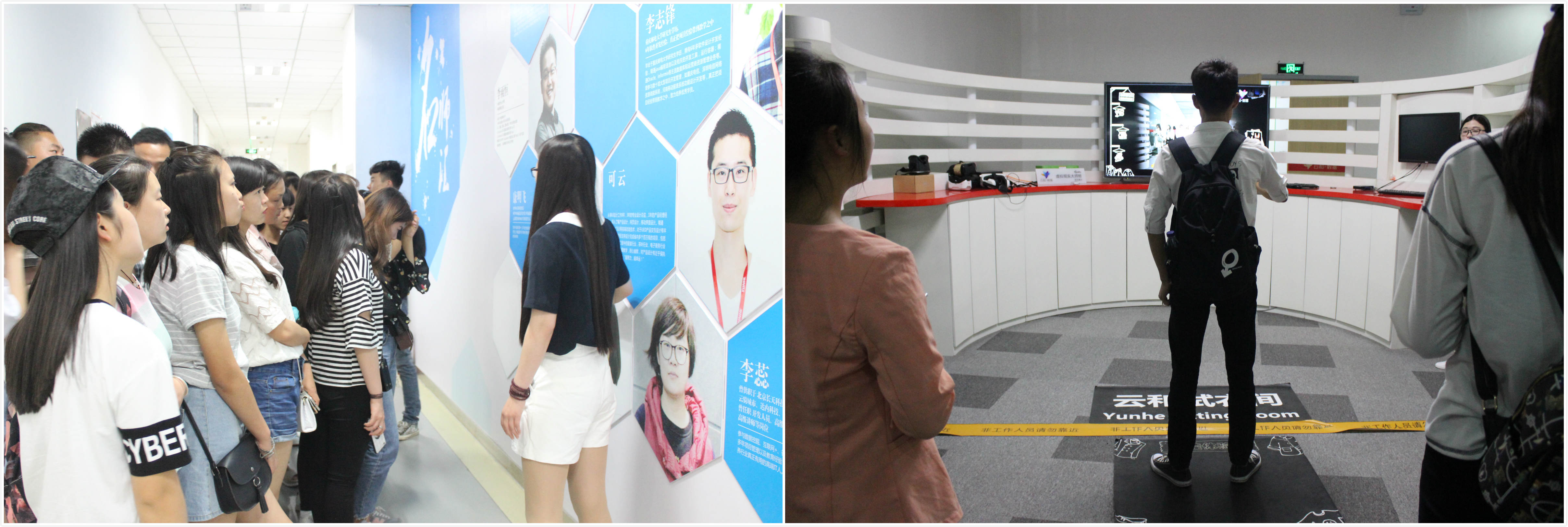 就在今天,新乡学院商学院电子商务学的师生和河南工贸职业技术学院的学生相继来到云和数据参观学习,毒辣的太阳都阻挡不住同学们的热情,在院校老师的带领下,兴致勃勃地对公司展开了参观。
