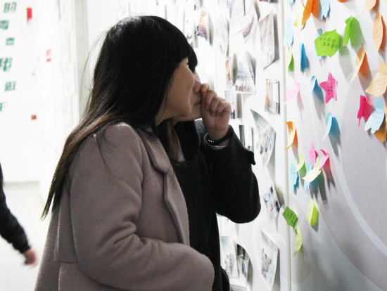 王老师带着学生方队慢慢向前走,边走边讲解。展示墙上的UI、Android、Java、PHP、Unity等课程方向的学员作品让大家交口称赞,游戏项目的展示更是让几个男生侧耳讨论。