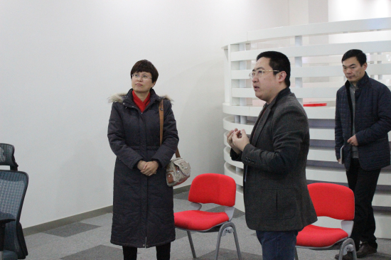 参观过程中,王总首先带领胡主任和魏主任一行人参观了公司的办公环境和学员活动区,并就云和数据的发展历程、企业文化和校企合作做了详细的介绍。