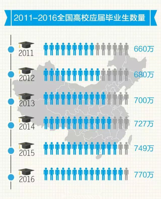 一张图带你看懂2011年至2016年,高校应届毕业生数量走向