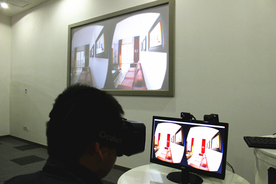 在云和数据高总监与李经理的引领下,郭局长一行来到云和技术体验中心,听取了有关unity前沿应用技术方面的讲解,并亲身体验了云和数据基于Unity3D开发的购物、房地产行业虚拟现实技术应用项目。
