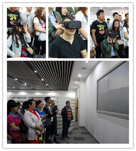 参观完教学区,走进当下最流行的虚拟现实体验区,到访的人员被虚拟试衣间所吸引,在高总的演示后,纷纷上前进行体验。